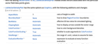 - ListVectorDensityPlot has the same options as Graphics, with the following additions and changes: [List of all options]