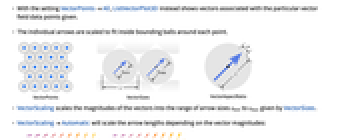 - VectorScaling scales the magnitudes of the vectors into the range of arrow sizes smin to smax given by VectorSizes.