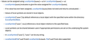 - LocalSymbol[name] evaluates to give the value assigned for LocalSymbol[name].