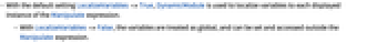 - With the default setting LocalizeVariables->True, DynamicModule is used to localize variables to each displayed instance of the Manipulate expression.