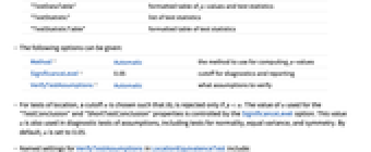 -values and test statistics"TestStatistic" list of test statistics "TestStatisticTable" formatted table of test statistics - The following options can be given: