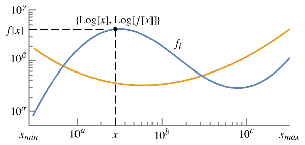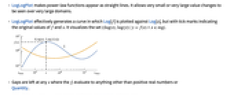 - LogLogPlot effectively generates a curve in which Log[f] is plotted against Log[x], but with tick marks indicating the original values of f and x. It visualizes the set