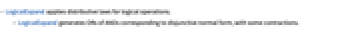 - LogicalExpand generates ORs of ANDs corresponding to disjunctive normal form, with some contractions.