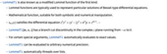 . - For certain special arguments, LommelT1 automatically evaluates to exact values.