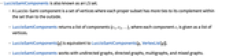 - LuccioSamiComponents returns a list of components {c1,c2,…}, where each component ci is given as a list of vertices.