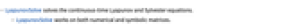 - LyapunovSolve works on both numerical and symbolic matrices.