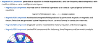 - MagneticPDEComponent is typically used to model electric motors, inductors and electromagnets.