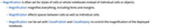 - Magnification is often set for styles of cells or whole notebooks instead of individual cells or objects.