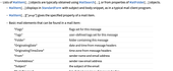 - Lists of MailItem[…] objects are typically obtained using MailSearch[…], or from properties of MailFolder[…] objects.