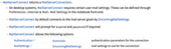 - MailServerConnect by default connects to the mail server given by $IncomingMailSettings.