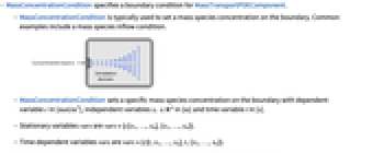 - MassConcentrationCondition is typically used to set a mass species concentration on the boundary. Common examples include a mass species inflow condition.