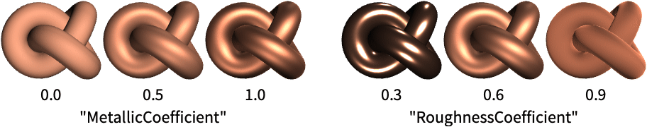 "MetallicCoefficient" metallic coefficient of the materal surface "RoughnessCoefficient" roughness coefficient of the materal surface - Values vali for physical parameters parmi can be given in the following forms: