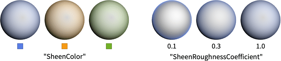 The "SheenRoughnessCoefficient" parameter sets the concentration of the sheen lighting: