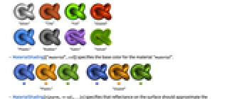 - MaterialShading[{"material",col}] specifies the base color for the material "material".