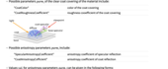 "CoatColor" color of the coat covering "CoatRoughnessCoefficient" roughness cooefficient of the coat covering - Possible anisotropy parameters parmi include: