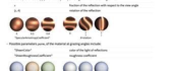 s fraction of the reflection with respect to the view angle {s,θ} rotation of the reflection - Possible parameters parmi of the material at grazing angles include: