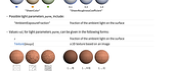 s fraction of the ambient light on the surface Texture[image] a 2D texture based on an image - MaterialShading[] is effectively equivalent to MaterialShading[<|"BaseColor"White|>].