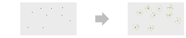 - Typical uses include things like plants or trees as centers with seedlings as the points of the cluster.