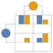 This plot uses gray for the losing player (lowest value), a vibrant blue or orange for the winning player (highest value) and a pale orange or blue for a tie (average value).