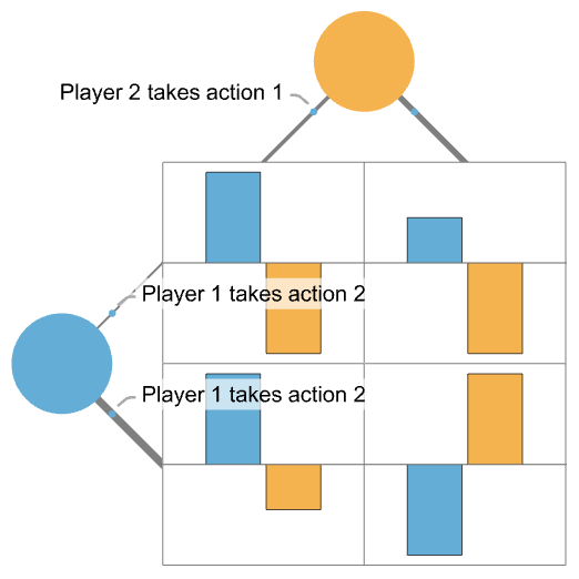- The following is a plot of a two-player game where payoffs are plotted as charts and colored according to the player: