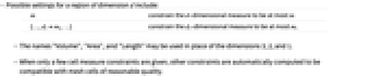 -dimensional measure to be at most mi - The names "Volume", "Area", and "Length" may be used in place of the dimensions 3, 2, and 1.