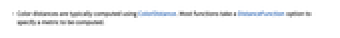 - Color distances are typically computed using ColorDistance. Most functions take a DistanceFunction option to specify a metric to be computed.