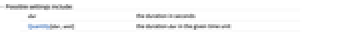dur the duration in seconds Quantity[dur,unit] the duration dur in the given time unit