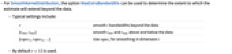 - For SmoothKernelDistribution, the option MaxExtraBandwidths can be used to determine the extent to which the estimate will extend beyond the data.