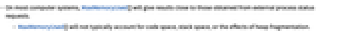- MaxMemoryUsed[] will not typically account for code space, stack space, or the effects of heap fragmentation.