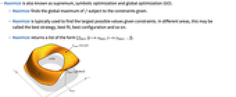 - Maximize is also known as supremum, symbolic optimization and global optimization (GO).