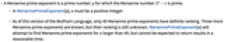 is prime. - In MersennePrimeExponent[n], n must be a positive integer.