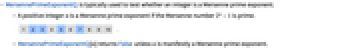 - MersennePrimeExponentQ is typically used to test whether an integer is a Mersenne prime exponent.