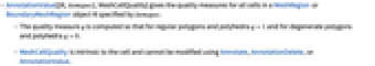 . - MeshCellQuality is intrinsic to the cell and cannot be modified using Annotate, AnnotationDelete, or AnnotationValue.