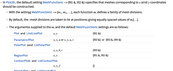 - The arguments supplied to the mi and the default MeshFunctions settings are as follows: