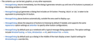 is taken to be equivalent to pressing the OK button. - MessageDialog places buttons automatically, outside the area used to display expr.