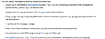- You can switch on and off messages using On[s::tag] and Off[s::tag].