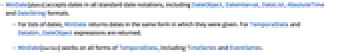 - MinDate[dates] accepts dates in all standard date notations, including DateObject, DateInterval, DateList, AbsoluteTime and DateString formats.