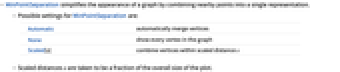 Automatic automatically merge vertices None show every vertex in the graph Scaled[s] combine vertices within scaled distance s - Scaled distances s are taken to be a fraction of the overall size of the plot.