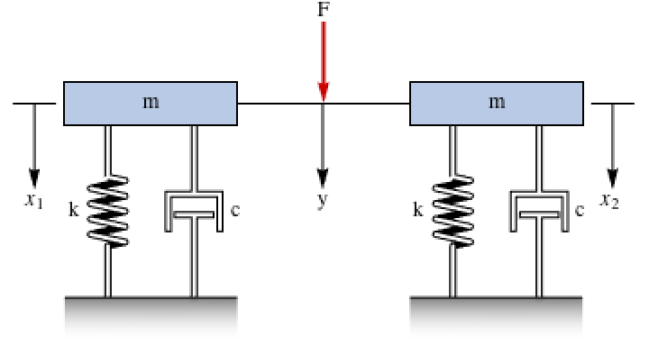 A parallel mass-spring-damper system is not completely controllable and observable. Design a controller based on the minimal system: