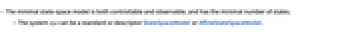 - The minimal state-space model is both controllable and observable, and has the minimal number of states.