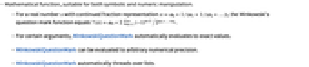 - MinkowskiQuestionMark can be evaluated to arbitrary numerical precision.