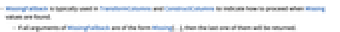 - MissingFallback is typically used in TransformColumns and ConstructColumns to indicate how to proceed when Missing values are found.