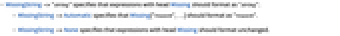 - MissingString->"string" specifies that expressions with head Missing should format as "string".