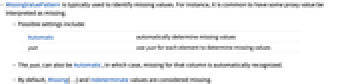 Wolfram Language. (2019). MissingValuePattern. Wolfram Language & System Documentation Center. Retrieved from https://reference.wolfram.com/language/ref/MissingValuePattern.html