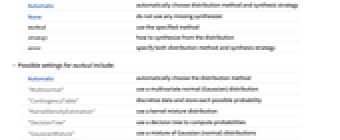 Automatic automatically choose distribution method and synthesis strategy None do not use any missing synthesizer method use the specified method strategy how to synthesize from the distribution assoc specify both distribution method and synthesis strategy - Possible settings for method include: