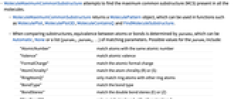 - MoleculeMaximumCommonSubstructure returns a MoleculePattern object, which can be used in functions such as MoleculePlot, MoleculePlot3D, MoleculeContainsQ and FindMoleculeSubstructure.