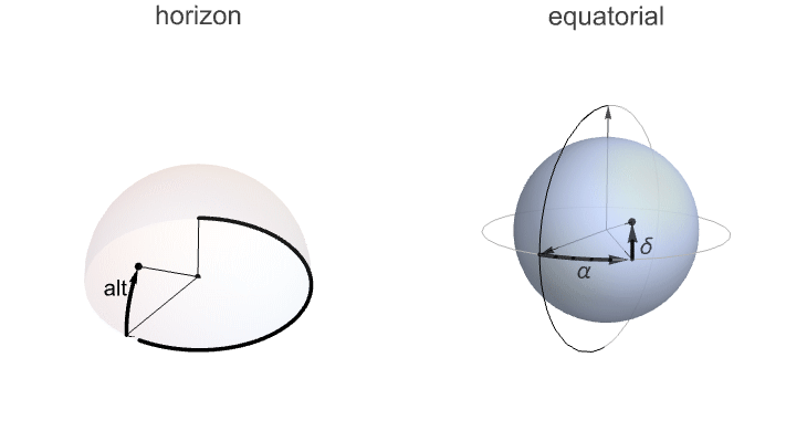 "Horizon" returns results as a pair of azimuth/altitude (az/alt) values "Equatorial" returns results as a pair of right ascension/declination (
