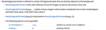 - MorphologicalPerimeter[image] is equivalent to MorphologicalPerimeter[image,0].