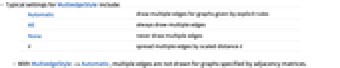 Automatic draw multiple edges for graphs given by explicit rules All always draw multiple edges None never draw multiple edges δ spread multiple edges by scaled distance δ - With MultiedgeStyle->Automatic, multiple edges are not drawn for graphs specified by adjacency matrices.