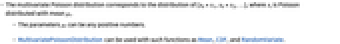 - MultivariatePoissonDistribution can be used with such functions as Mean, CDF, and RandomVariate.